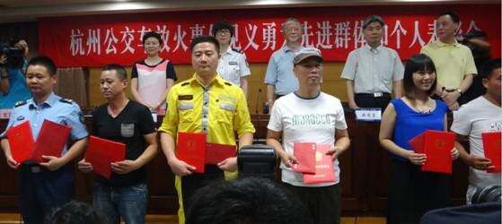 表彰会上,杭州市见义勇为基金会理事长娄延安代表杭州市见义勇为基金会向在7月5日公交车放火事件中涌现出来的见义勇为先进群体和先进个人表示崇高的敬意和亲切的慰问,希望受表彰的见义勇为先进群体和积极分子谦虚谨慎,再接再厉,再创佳绩,为创建“平安杭州、和谐社会”作出更大贡献。
