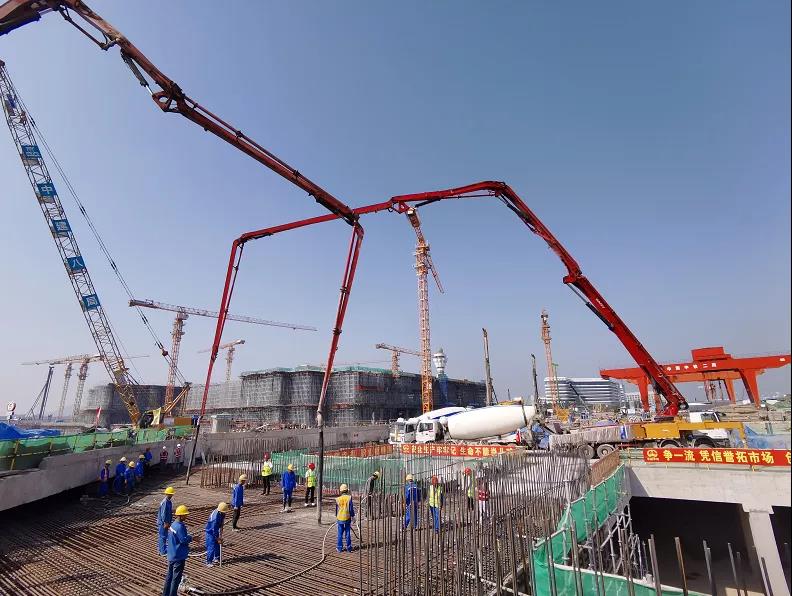 5月24日上午,随着最后一块顶板混凝土浇筑完成,地铁萧山机场站主体结构完工。