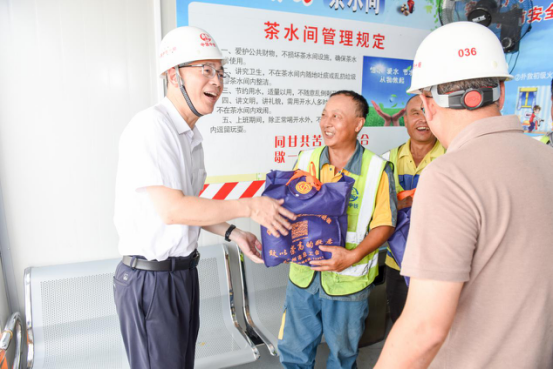 郑荣新书记一行首先来到地铁18号线驿城路站,慰问了奋战在高温下的一线建设者,向他们分发了防暑物品。随后,参观了七堡职工之家和控制中心,并在集团会议室进行了座谈交流。
