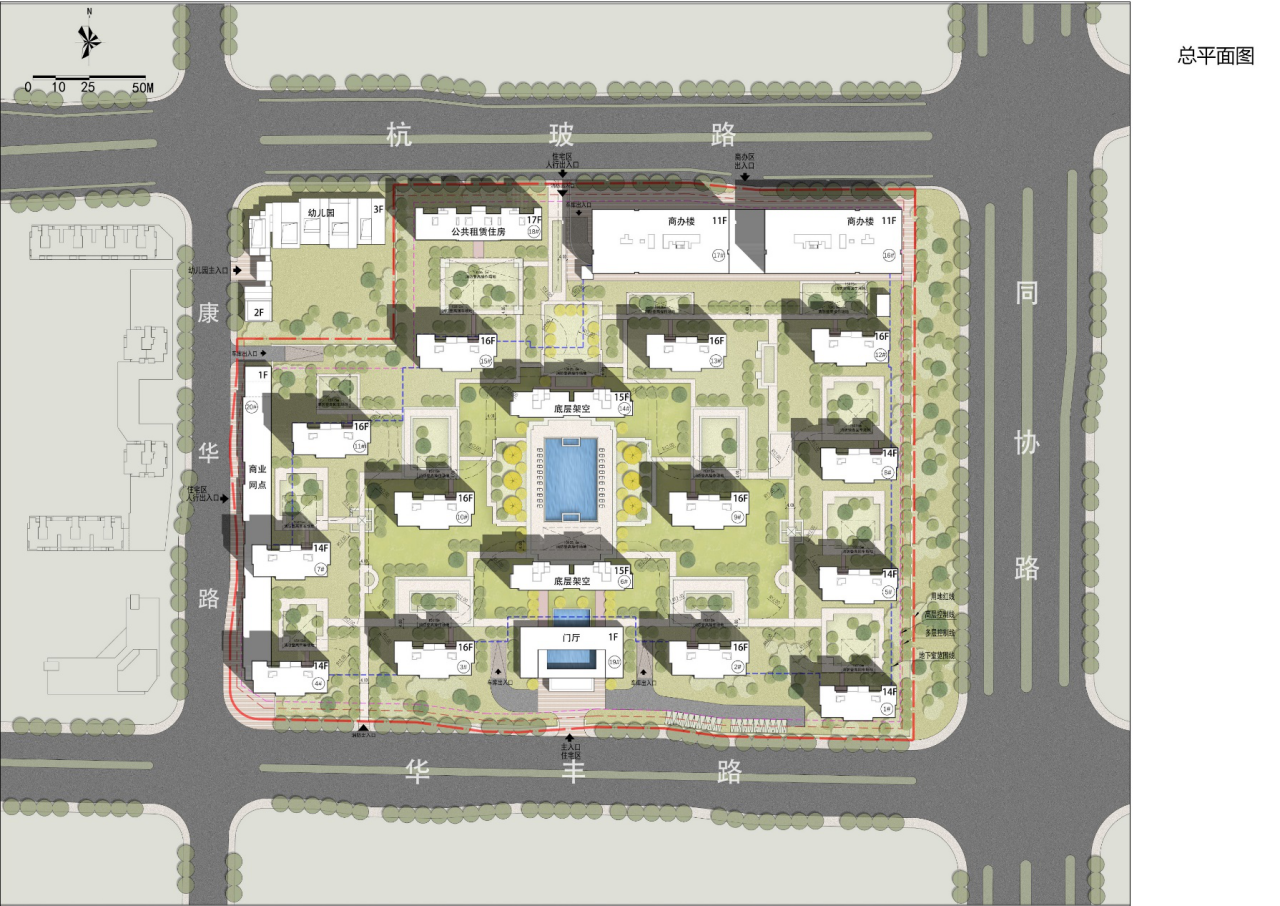 该地块东至同协路、北至杭玻街、西至康华街、南至华丰路,为商住用地,面积为68040㎡,容积率2.2,计容建筑面积149671㎡,地铁3号线同协路站至华丰路站区间下穿地块。