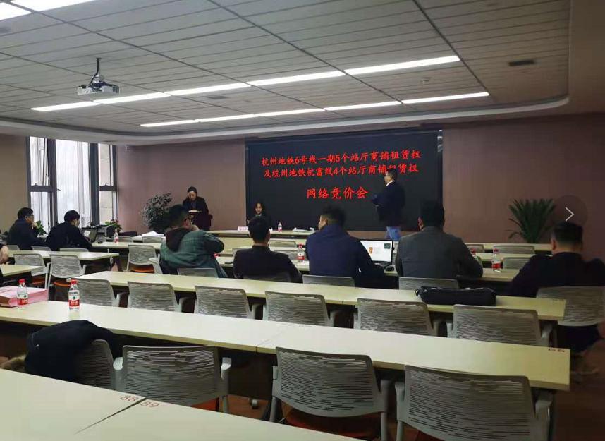 11月30日,杭州地铁6号线一期5个站厅、杭富线4个站厅商铺项目租赁权网络竞价会在杭州企业产权交易中心有限公司竞价厅举行。入围的3家合格竞买人经过多轮激烈竞价,最终浙江罗森百货有限公司竞得本项目。