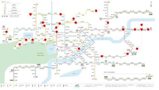 2号线:曹家桥站、飞虹路站、盈丰路站、庆菱路站、凤起路站、钱江路站、下宁桥站、学院路站、丰潭路站、虾龙圩站、墩祥街站、金家渡站、白洋站、杜甫村站