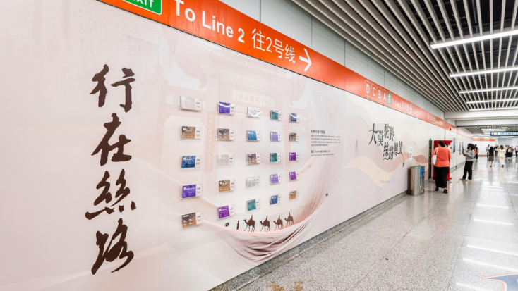 在2024年成功策划“行在丝路1.0”品牌活动后,杭铁传媒在今年五一黄金周再度携手杭州中国丝绸城,于杭州地铁2号线与3号线换乘枢纽武林门站,倾力呈现“行在丝路2.0——大漠驼铃,丝路传情”主题营销盛典。此次活动以更具创意的表现形式、更富深度的文化内涵、更为前沿的互动科技,将丝绸文化的千年神韵与现代都市的活力脉搏完美融合,彰显了杭铁传媒在文化传播领域的卓越策划能力与资源整合实力。