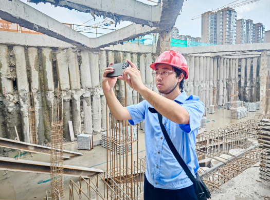 3号线华丰路至汽轮广场区间的华丰单位项目现场,巡查监管中队长陈雷越的工装早已被汗水浸透,又在烈日炙烤下反复晒干。他拿着项目资料,低头观察项目现场作业情况,额头的汗珠不断滚落,而这只是他日常现场监管工作中的一个缩影。热浪翻腾中,他和他的中队逐个查看标识桩、逐项记录隐患点、一次次劝阻违规作业,用毫不松懈的坚守,编织起一条坚韧的“安全生命线”。