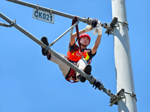 “夏季高温对供电设备的负荷要求很高,一旦设备过热容易引起故障跳闸,所以我们必须定期对接触网设备进行巡视和检修。”2号线接触网综合检修工班工班长常亮,一边用袖口拭去满脸汗珠,一边解释道。烈日下,他悬在4米多的高空,攀上腕臂全神贯注地检查清扫绝缘子,使用扭矩扳手,严格按照标准力矩值检查紧固每一处螺栓连接,同时开展一系列维修保养工作。